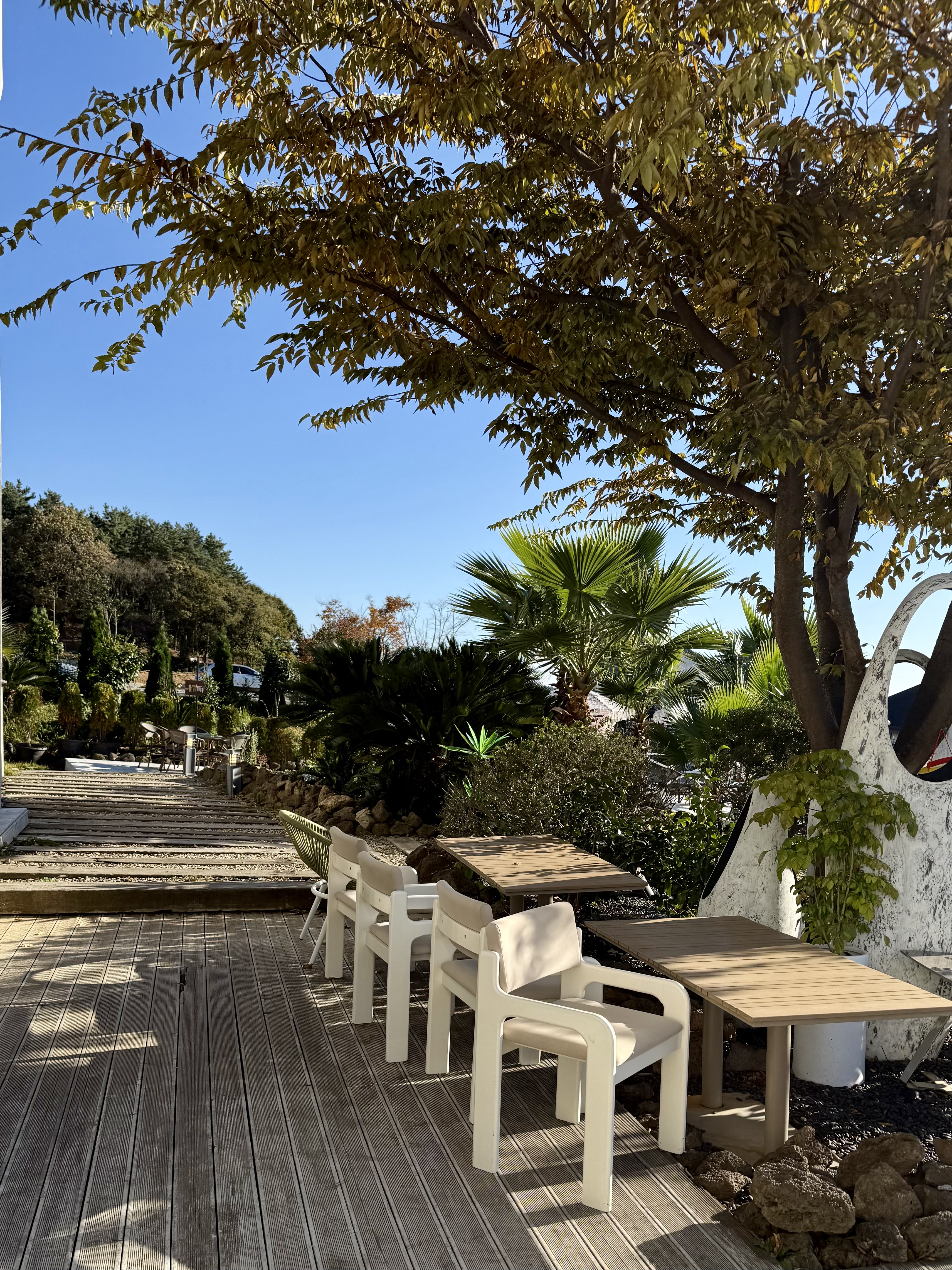 제주 감성 카페처럼 각기 다른 분위기의 예쁜 야외 테라스가 많아,