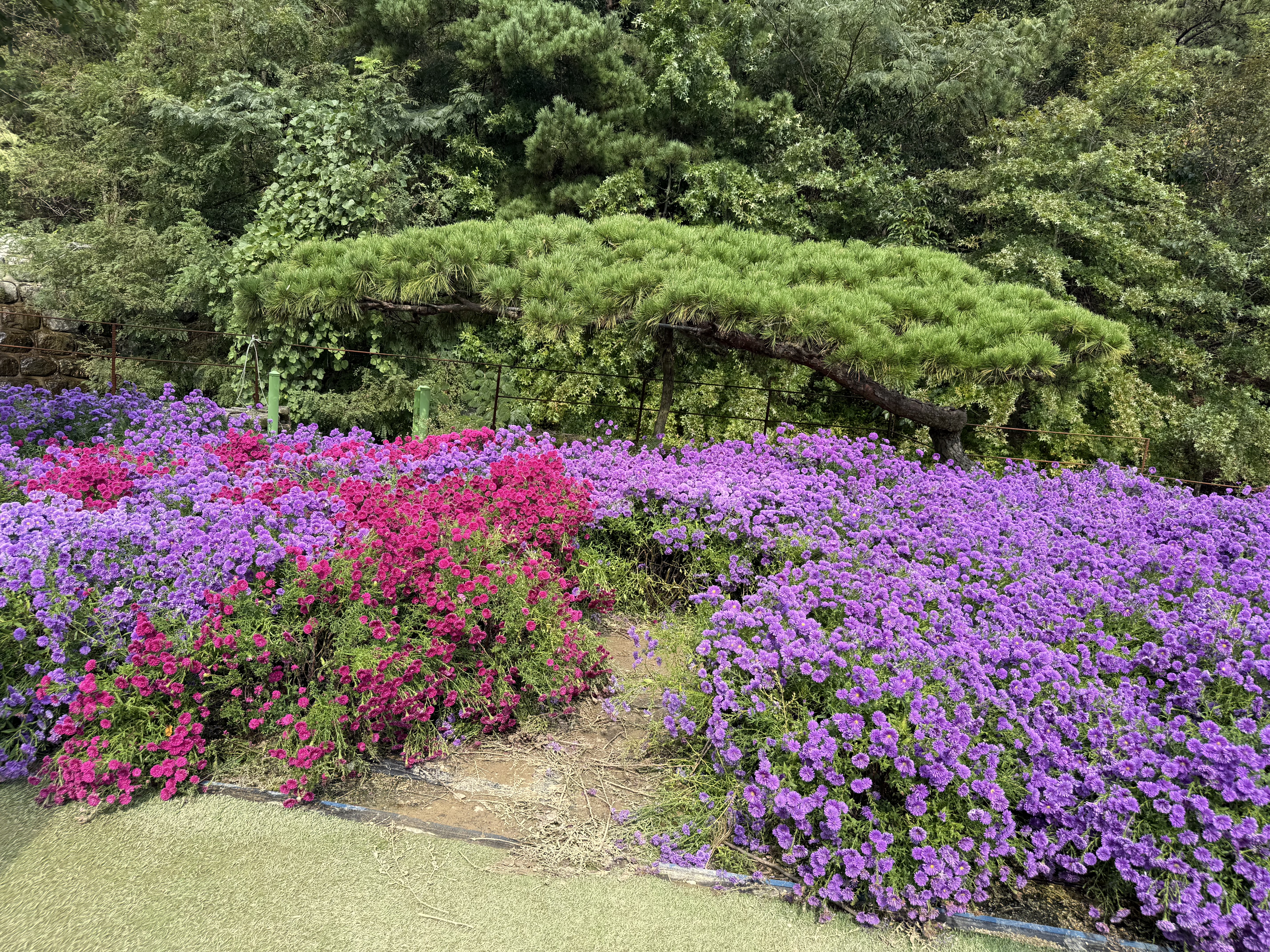 입구에는 소나무, 천일홍, 팜파스, 백일홍 등